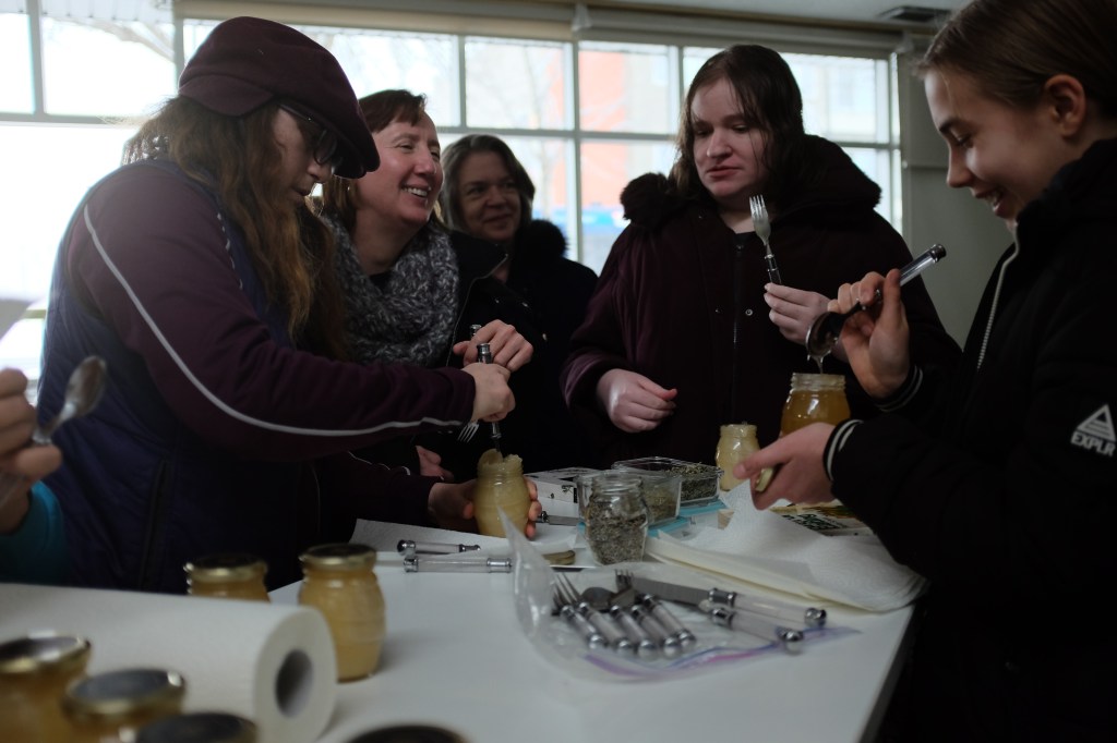Altmiks also demonstrated how local herbs can be used to infuse honey with diverse flavours. Attendees paid a small five-dollar fee to mix honey with herbs such as lavender and sage. Guests got to take their infused honey home with them, courtesy of the honeybees of the MacEwan University Office of Sustainability’s urban beekeeping program.